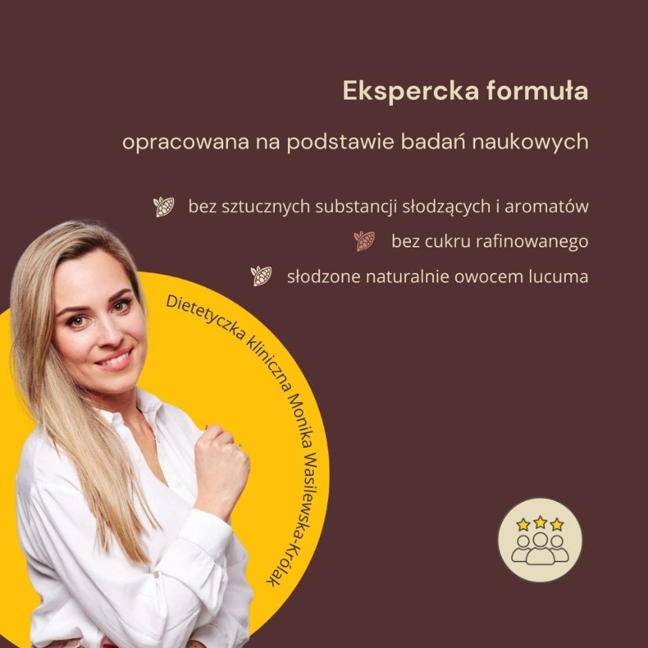 z lekką nutą słodyczy pochodzącą z owocu lucuma. - Bez cukru, bez słodzików, bez nagłych skoków glikemii.